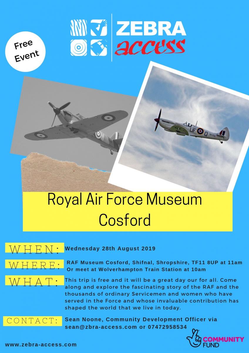 Hello, we have an interesting event that is taking place on Wednesday 28th August. The event is at Cosford RAF museum. You will have the opportunity to have a look around and see the old planes and the history of them, and how they have changed through the years. Entry to the museum is free of charge. If you are interested and want to go there are two options of where you can meet us these are; Wolverhampton train station at 10:00 am or you can meet us at Cosford RAF museum at 11:00am. Just to remind you entry to the museum is free and that I will be taking a BSL interpreter along with me. The address for Cosford RAF museum will appear at the end of this video clip. Hope to see you there, take care.