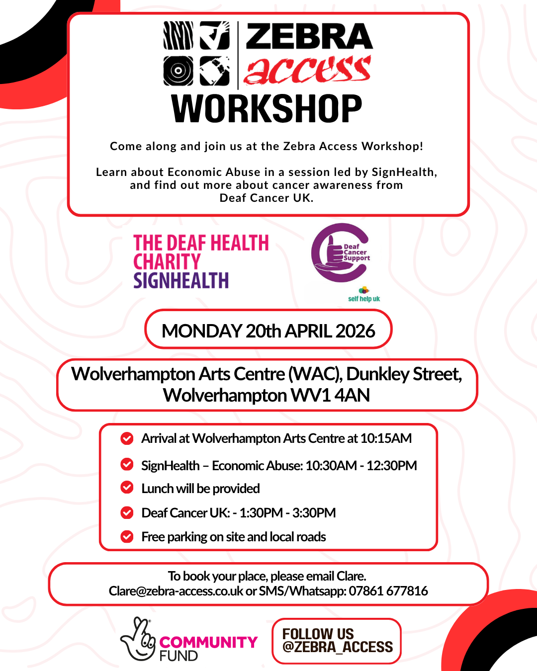With the support of funders such as the National Lottery's Community Fund, BFI, Foundations, Trusts and so on, Zebra Access CIO provides a range of free services and support to Deaf, Deafblind, Hard of Hearing and Deafened people and communities. Zebra Access staff, volunteers have the right to work in a safe and abuse free environment alongside with service users. The organisation will not tolerate any kind of abuse against its staff, volunteers, service users or property.